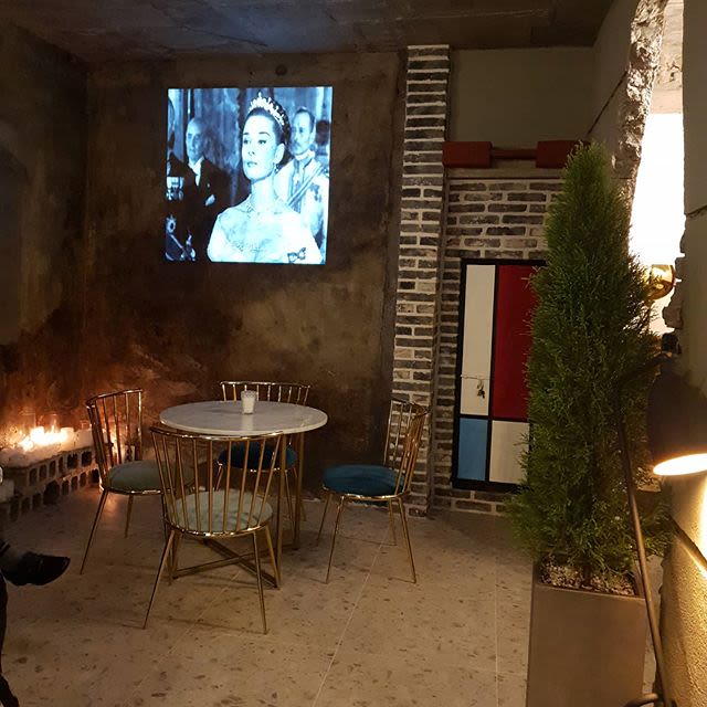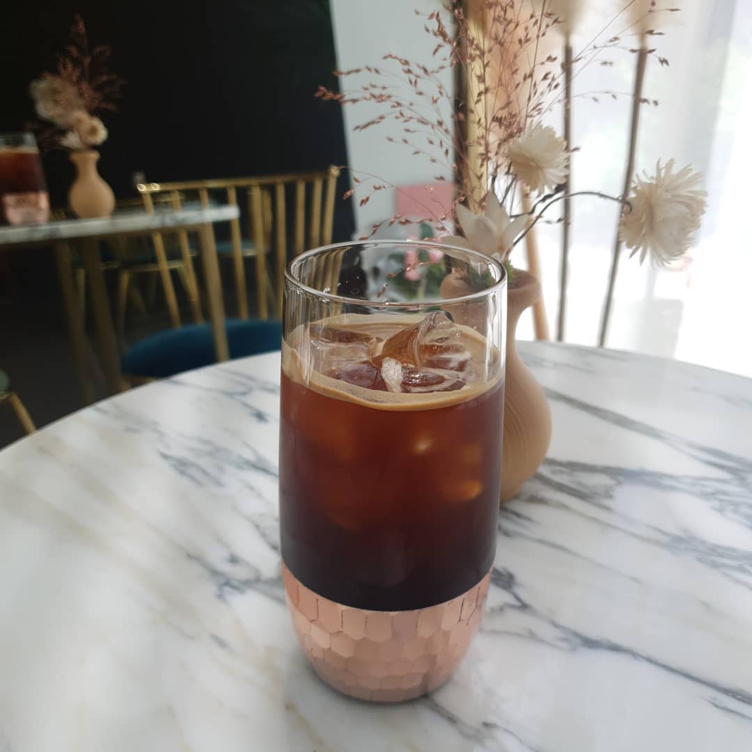 감각적인 벽돌 인테리어와 골드 프레임 가구가 어우러진 분위기 좋은 카페