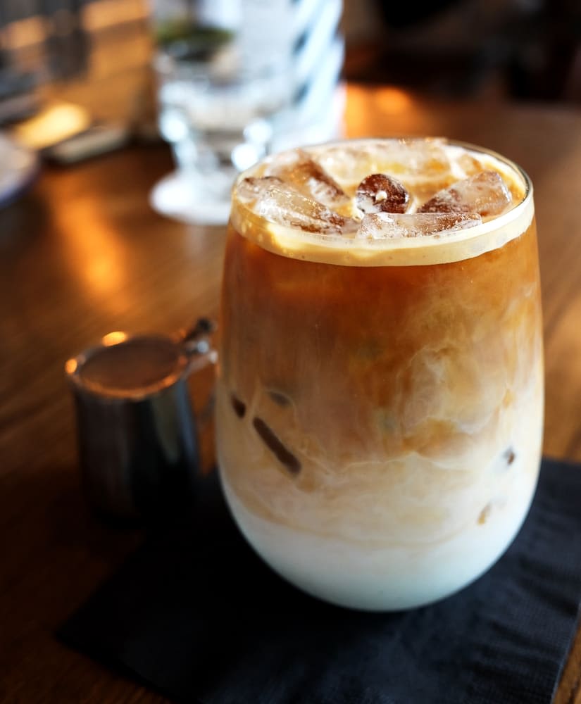 에스프레소에 우유를 혼합한 후 얼음을 넣은 커피