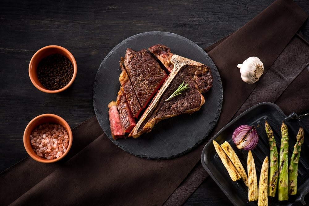 T자 모양의 뼈에 붙은 소고기 안심과 등심 부위를 구워낸 피렌체식 스테이크