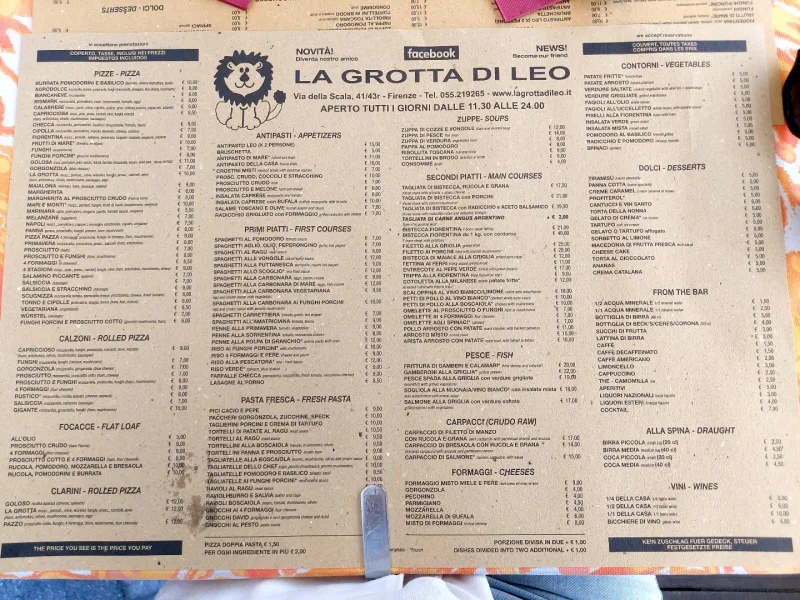 피렌체 현지식당 라 그로따 디 레오 La Grotta Di Leo 가성비 맛집: 티본스테이크, 알리오올리오, 까르보나라, 마르게리따 피자