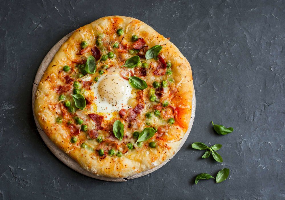 모차렐라 치즈, 토마토, 달걀을 토핑한 피자