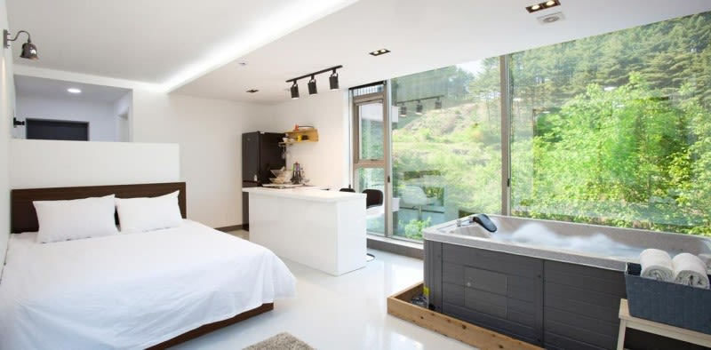 ● 22시 이후 입실하실 경우 펜션으로 미리 연락 부탁드립니다. ● 가평역 조은 마트 무료 픽업 서비스 ▷ 2인 기준 30,000원 이상 구매 시 가능합니다. ● 펜션 내에 주차 가능한 공간이 있습니다. 평일 기준(일~금) 토요일 제외 4키로 미만 30,000원 /4키로 이상 동반 불가 와이파이 전 객실 무료 ● 예약 인원에서 인원이 추가되는 경우 펜션에 미리 연락을 주시기 바랍니다. ● 203,204호는 스파 1회 사용 제한 됩니다. ● 기준 인원 초과 시 추가 인원에 대한 비용이 별도로 발생할 수 있습니다. ● 최대 인원 초과 시 입실이 불가능할 수 있으며, 해당 사유로 환불받을 수 없습니다. ● 반려동물 입실 가능 펜션 외에 반려동물 동반 시 입실이 거부될 수 있으며, 해당 사유로 환불받을 수 없습니다. ● 숙박업소는 법적으로 청소년 혼숙이 금지되어 있습니다. ● 미성년자의 예약 및 이용은 숙소 규정에 따라 결정되며 해당 사유로 환불받을 수 없습니다. ● 다음 이용 고객을 위해 입실, 퇴실 시간을 준수해 주시기 바랍니다. ● 객실 및 주변 시설 이용 시 시설물의 훼손, 분실의 책임은 투숙객에게 있으며, 손해배상의 책임을 질 수 있습니다. ● 객실의 안전과 화재예방을 위해 객실 내에서 생선이나 고기 등을 굽는 직화 방식은 허용되지 않으며, 개인적으로 준비해 오는 취사도구(그릴, 숯, 전기/전열기구 등)은 반입이 금지되어 있습니다. ● 객실 내에서의 흡연은 금지되어 있으며, 지정된 장소를 이용해 주시기 바랍니다. ● 다른 이용객에게 피해를 줄 수 있는 무분별한 오락, 음주, 고성방가는 삼가주시기 바랍니다. [바비큐 시설] ● 개별 바비큐 이용 안내 ▷ 전기 그릴 : 객실당 (2인~3인) 20,000원/4인 30,000원 ▷ 바비큐 1SET : 2인 기준 100,000원(전기 그릴 포함) ▷ 1SET 기준 : 돼지고기 500g + 기본 밑반찬 + 된장찌개 + 야채 세트 ▷ 예약 : 바비큐 세트 준비는 오후 6시부터 8시까지만 가능합니다. [스파 시설] ● 7월 1일~9월 22일까지 야외 수영장 개장 ● 수영장 이용요금 무료 ● 스파&월풀 안내 ▷ 해당 객실 : M201 STUDIO, M202 복층, M203 STUDIO, M204 STUDIO, M301 STUDIO, M302 STUDIO ▷ 스파 유형 : 제트스파 ▷ 복장 : 스파 이용 시 탈의 or 수영장 착용 ● 이용 시 유의사항 ▷ 체크인 전 제트스파 물을 미리 받아서 운영하지 않습니다. ▷ 고객님께서 직접 물을 받아서 사용해 주세요. ▷ 절대로 물 재사용은 하지 않으니 안심하고 사용하세요. ▷ 스파 내 입욕제 사용은 절대 금지입니다. ▷ 너무 늦은 시간에 제트 기능은 소음으로 인하여 다른 손님에게 불편을 줄 수 있으니 자제를 부탁드립니다. ▷ 음주 후 스파 이용은 금지입니다. 복층