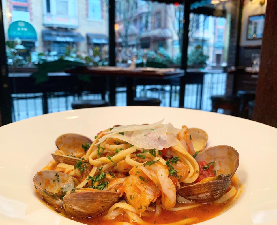 링귀네 면에 홍합, 조개, 새우 등 해산물과 화이트 와인 크림 소스를 넣어 볶아낸 디너 메뉴