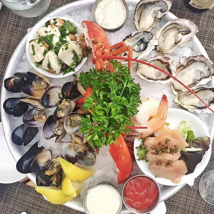 랍스터, 굴, 홍합, 조개 등으로 구성된 해산물 플래터