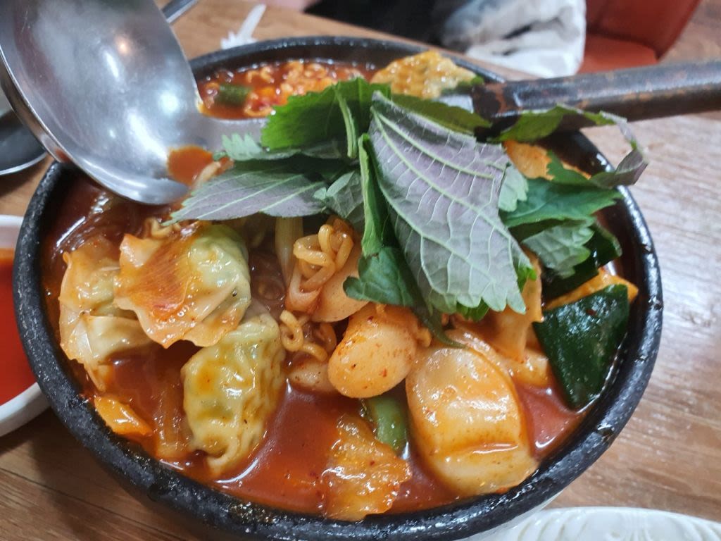 떡, 만두, 라면, 어묵 등을 넣어 끓여낸 메뉴