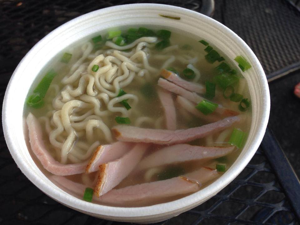 새우와 간장으로 만든 육수에 튀기지 않은 면을 넣은 라면