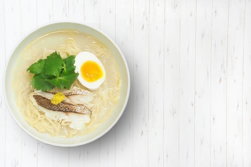 도미 육수에 면과 도미살, 죽순 등을 넣은 메뉴