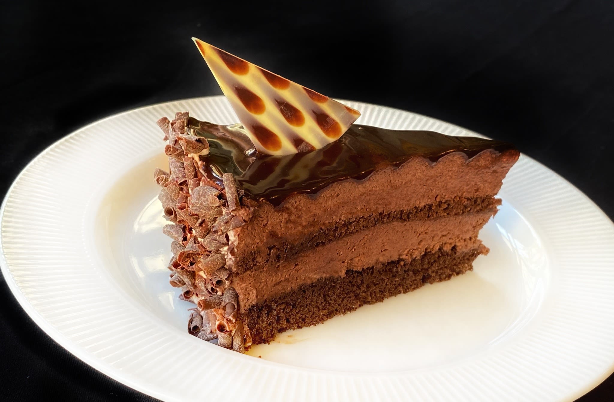 초콜릿 빵과 초콜릿 크림을 겹겹이 놓은 케이크 메뉴