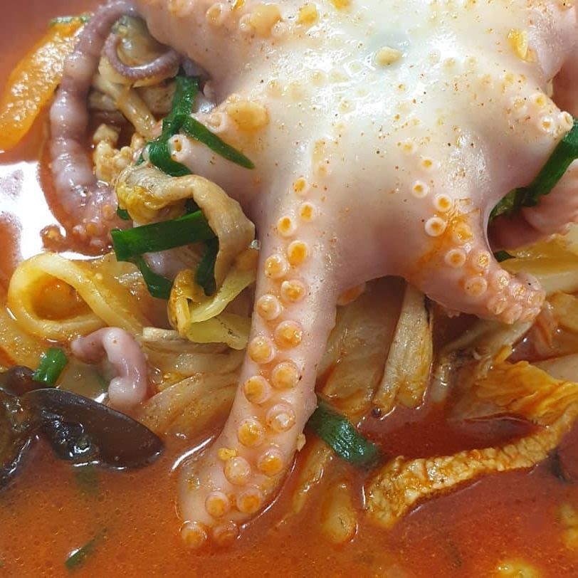 시금치로 만든 면이 들어간 얼큰한 맛의 불짬뽕을 판매하는 맛집