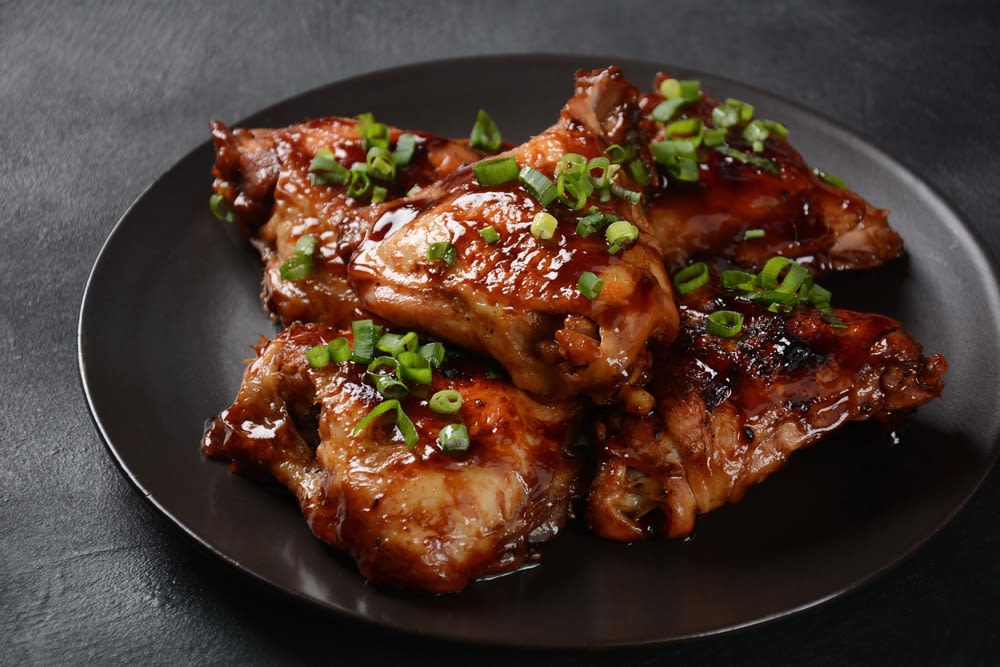 간장과 향신료에 마리네이드한 닭고기 위에 양념을 올린 메뉴
