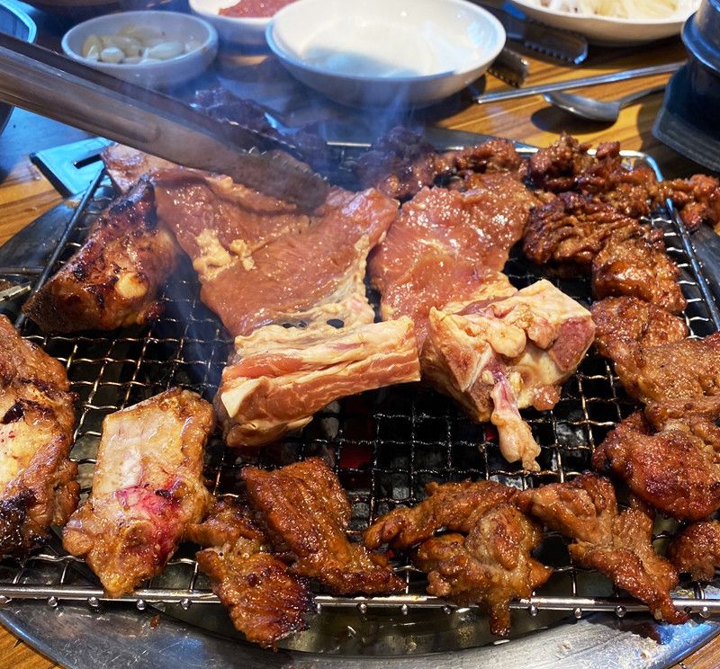돼지갈비와 소갈비를 먹을 수 있는 화로 직화 구이 식당