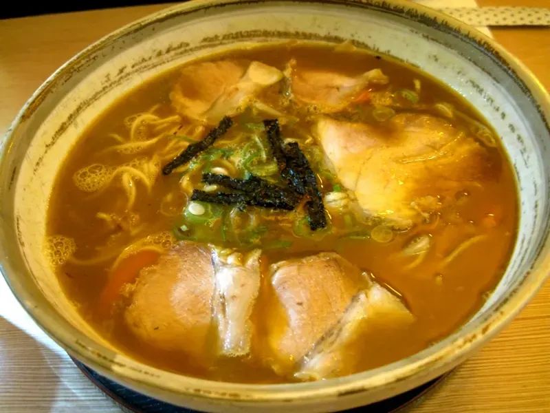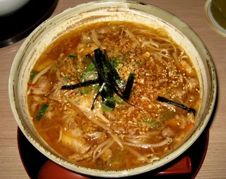 돼지뼈 육수에 삼겹살과 마늘, 각종 채소를 넣은 라멘