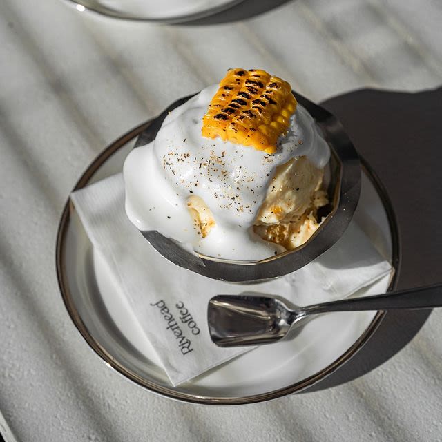 사이폰 방식으로 내린 커피와 구운 옥수수가 올라간 푸딩이 유명한 카페