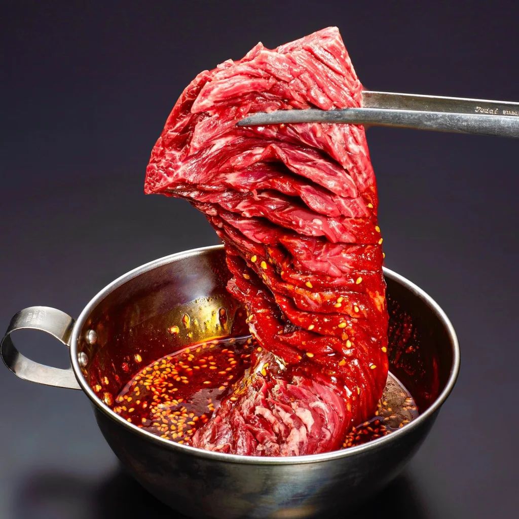 소의 횡경막 부위에 불고기 소스를 곁들인 메뉴