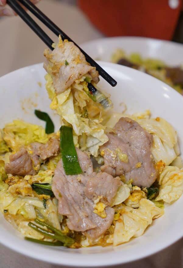 돼지고기와 달걀, 배추, 각종 채소를 볶아낸 요리