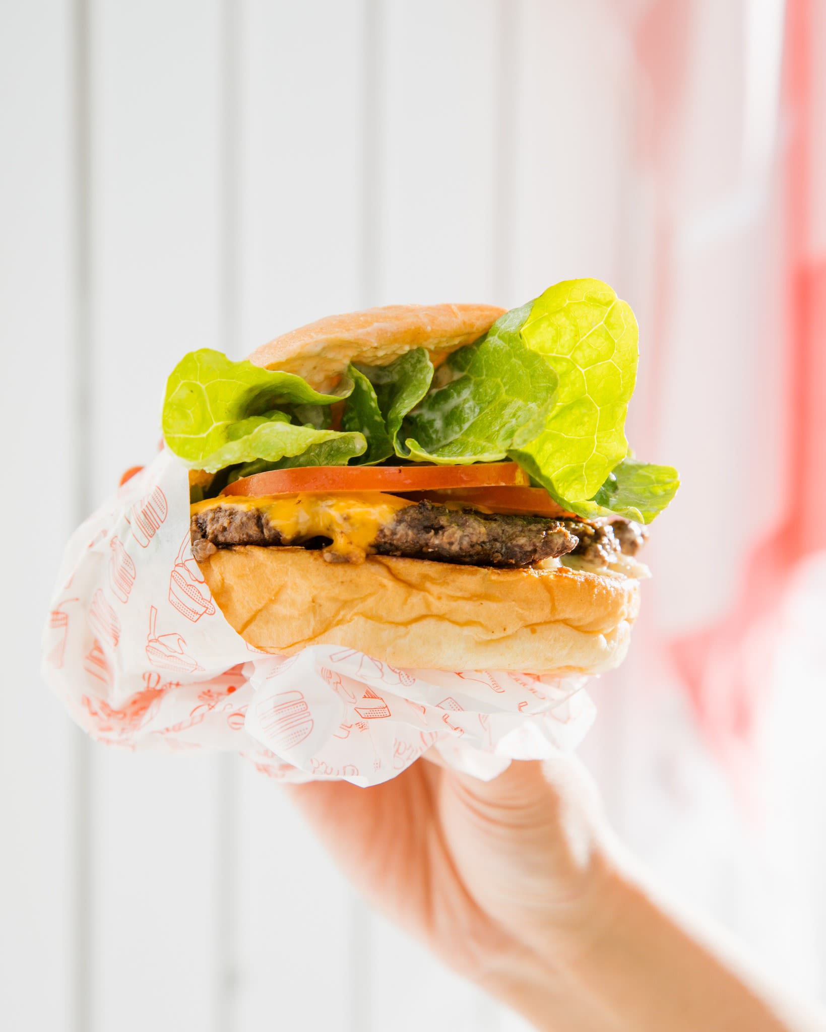 소고기 패티 2장, 치즈 2장, 양상추, 토마토 등을 넣은 버거