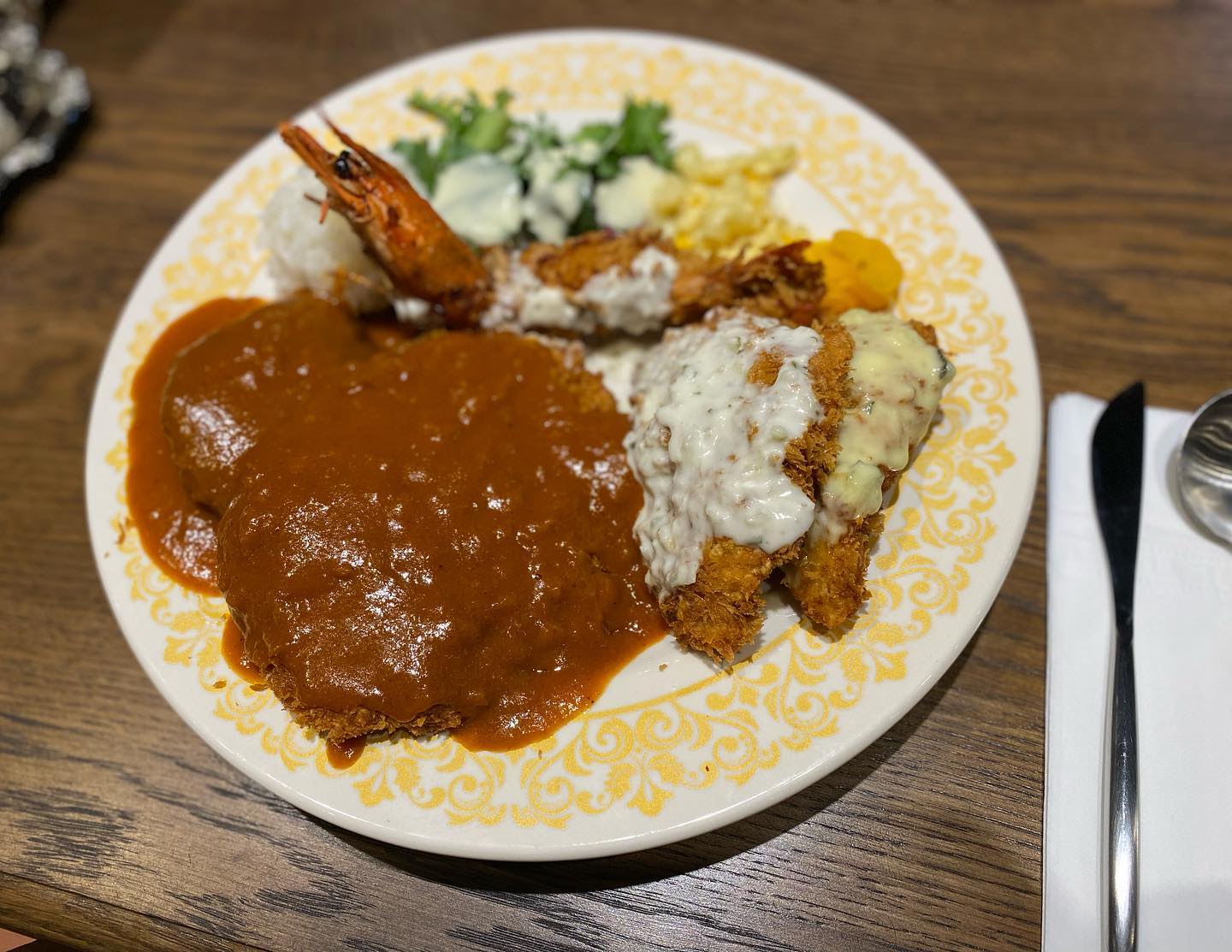 돈가스, 햄버그스테이크, 왕새우가스, 생선가스, 치킨가스 등으로 구성된 모둠 세트 메뉴