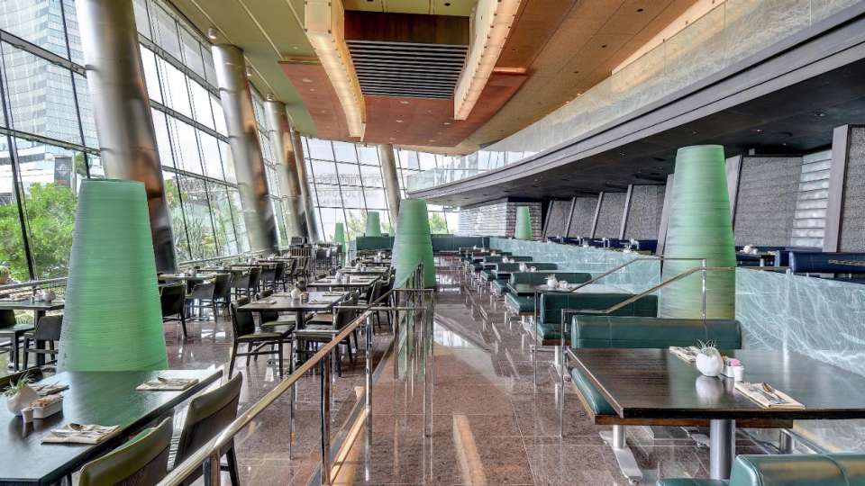 통유리창과 높은 천장으로 쾌적한 분위기가 돋보이는 브런치 레스토랑