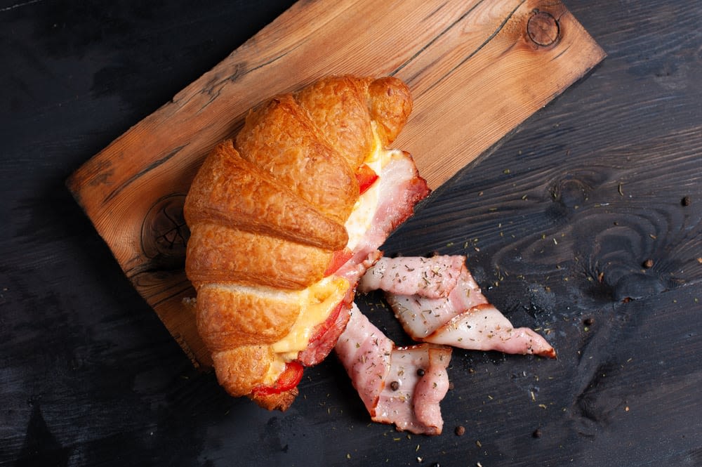 크루아상에 베이컨, 치즈, 달걀을 넣은 샌드위치