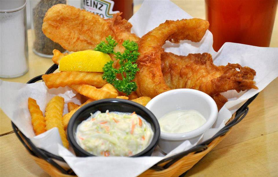 립과 생선 튀김을 먹을 수 있는 합리적 가격의 레스토랑