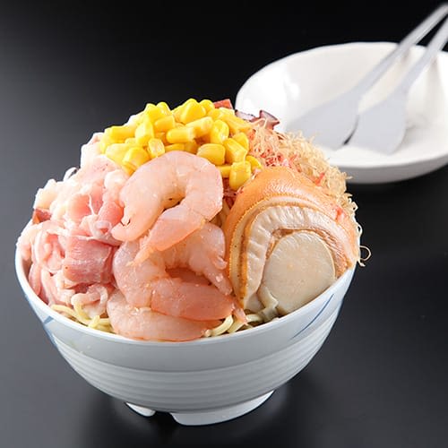 새우, 오징어, 돼지고기, 문어, 옥수수콘 등을 섞어 볶아낸 요리