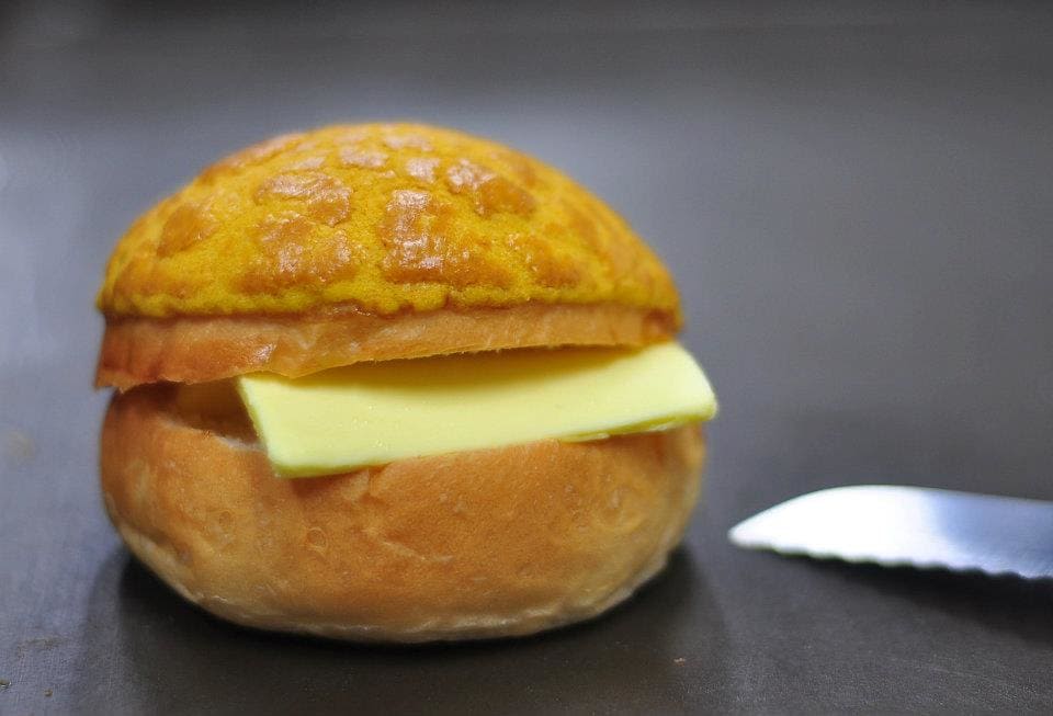 파인애플 오일에 구운 뒤, 슬라이스 버터와 치즈를 가운데에 넣은 소보루 빵