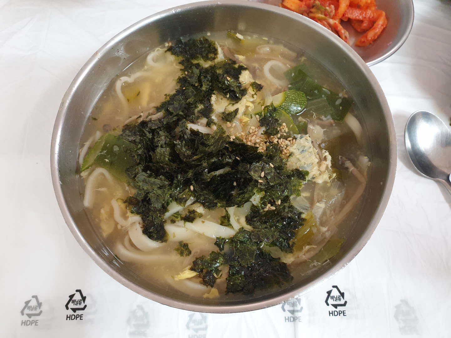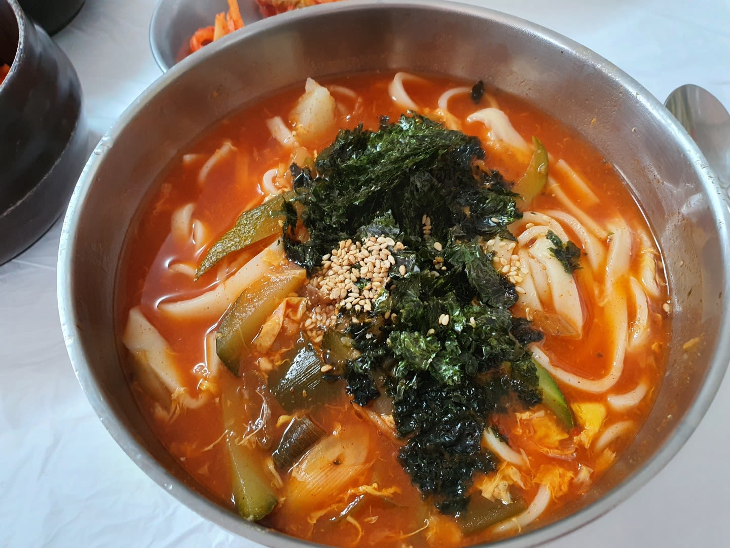 김가루와 깨가 듬뿍 들어가 고소한맛이 특징인 장 칼국수 전문점
