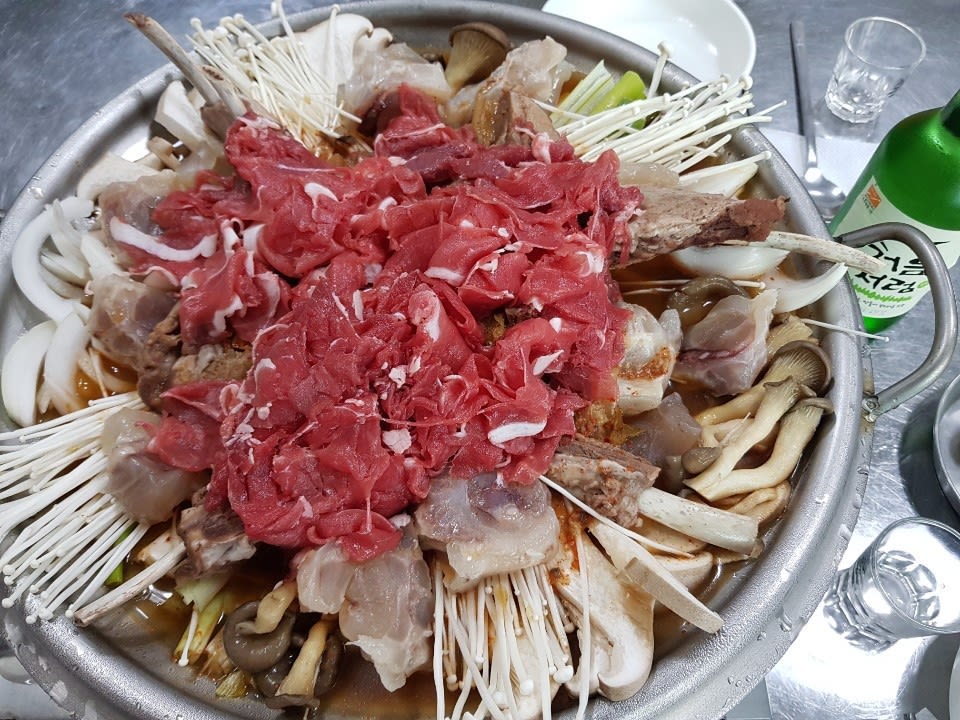 누룽지와 도가니가 푸짐하게 들어간 불고기 전골이 특색 있는 식당