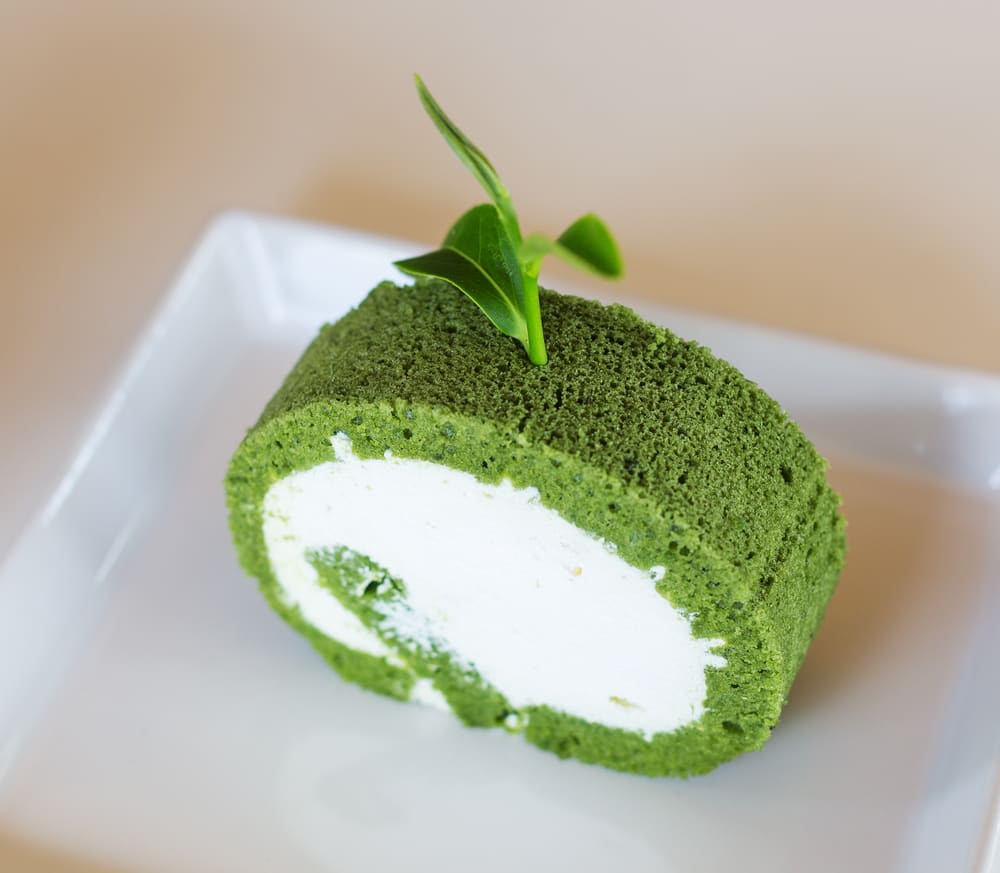 말차 스펀지 시트에 생크림을 넣고 말아낸 롤케이크