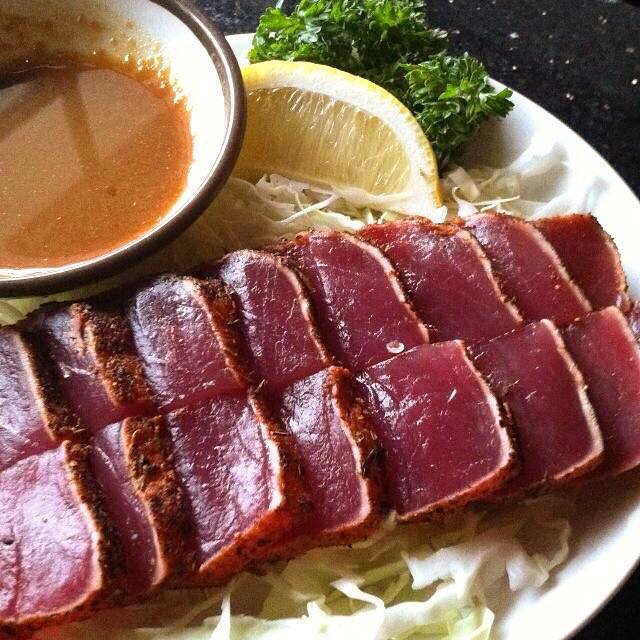 겉부분만 바짝 익힌 참치 구이 요리