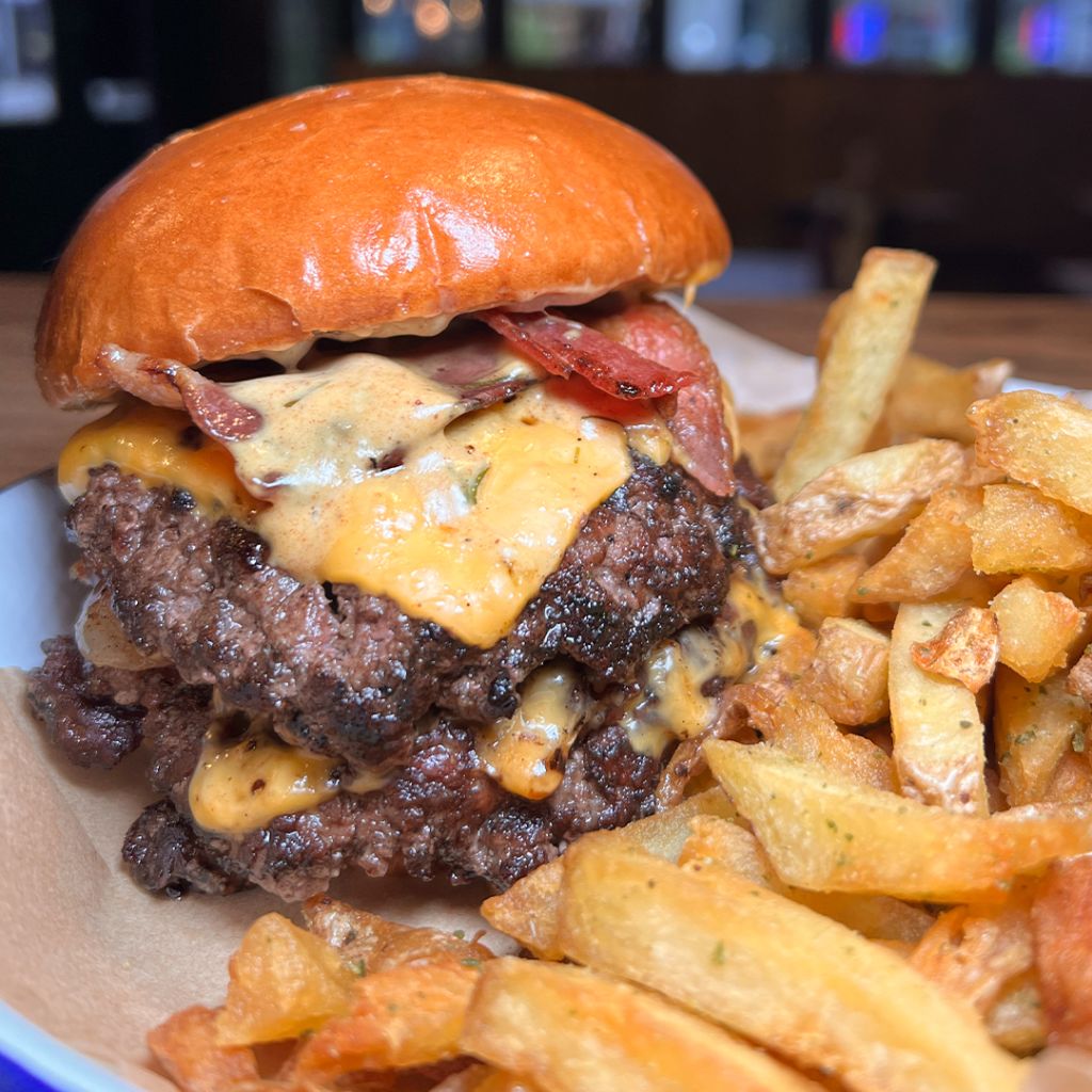 소고기 패티, 양파, 베이컨, 체더 치즈, 양배추 등을 넣은 햄버거와 사이드로 구성된 메뉴