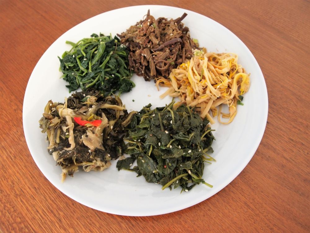 푸짐한 계절 나물로 구성된 산채 백반으로 인기 있는 식당