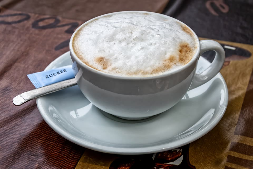 우유를 넣은 에스프레소에 우유 거품을 올린 커피