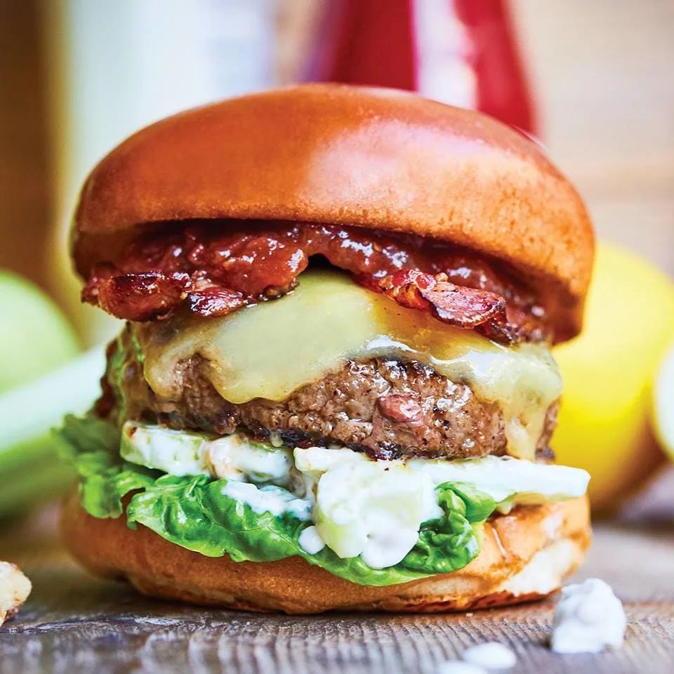 소고기 패티, 베이컨, 체더 치즈 등을 넣은 수제 버거와 감자튀김으로 구성된 메뉴