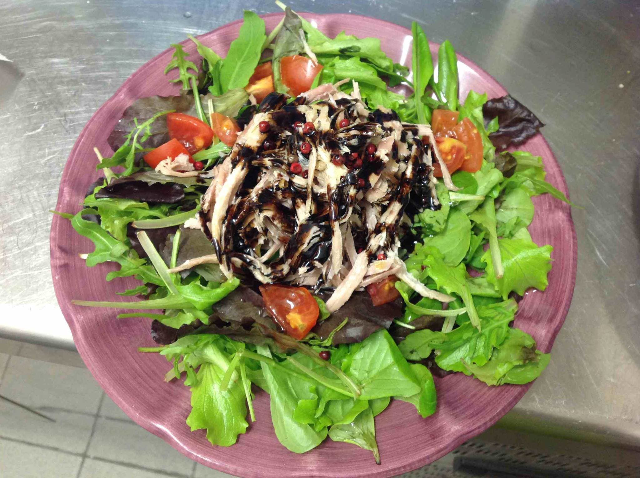 굵은 고추, 발사믹 식초, 돼지고기 등을 넣어 만든 샐러드