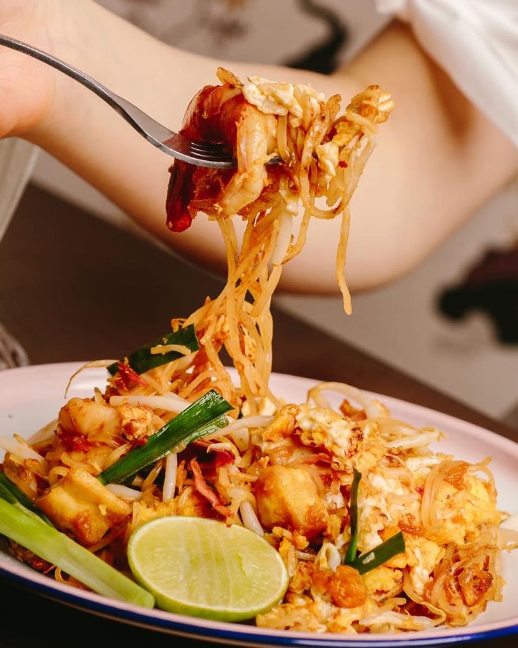 쌀국수에 새우, 두부, 달걀, 타마린드 소스를 곁들여 볶아낸 메뉴