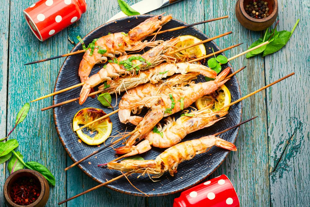 새우를 꼬지에 꽂은 후 숯불에 구워낸 메뉴