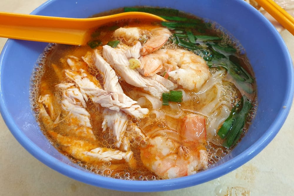 육수에 새우와 닭고기, 각종 채소, 면을 넣고 매콤하게 끓여낸 메뉴
