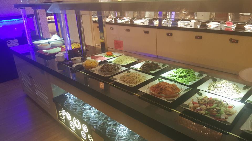 씨푸드, 롤 스시, 만두, 면 요리 등으로 구성된 뷔페