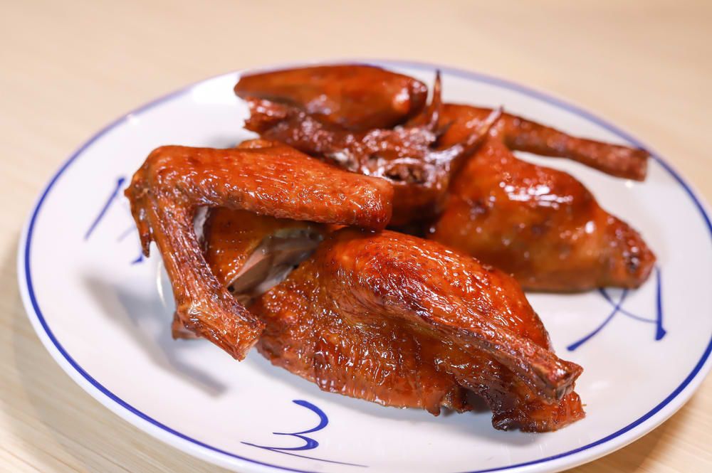 마가린과 우스터 소스로 양념한 비둘기를 그릴에 구워낸 메뉴