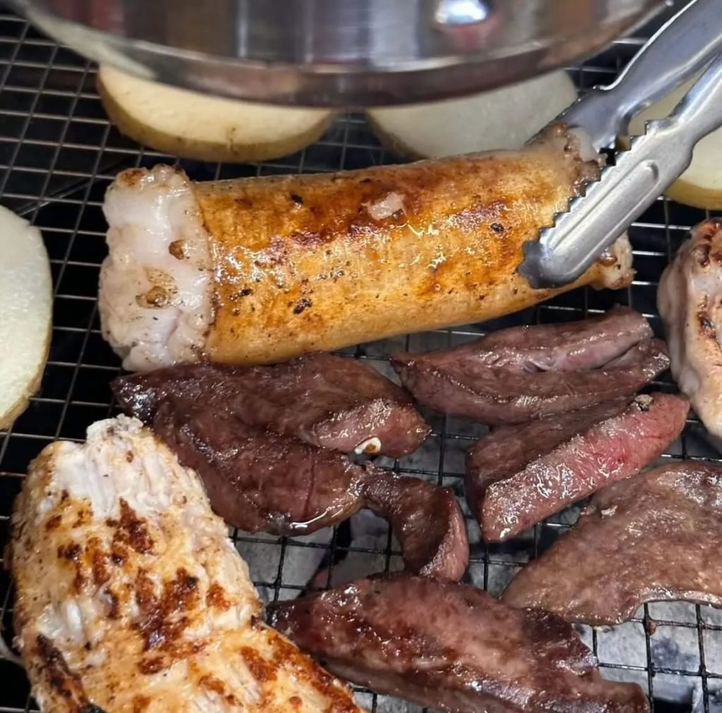속이 꽉 찬 한우 곱창과 대창을 숯불에 구워주는 식당