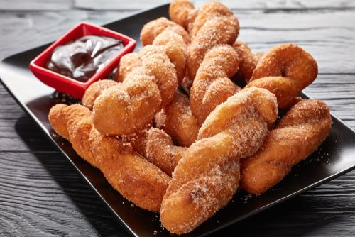 반죽에 바질, 토마토, 치즈를 넣고 튀겨낸 디저트
