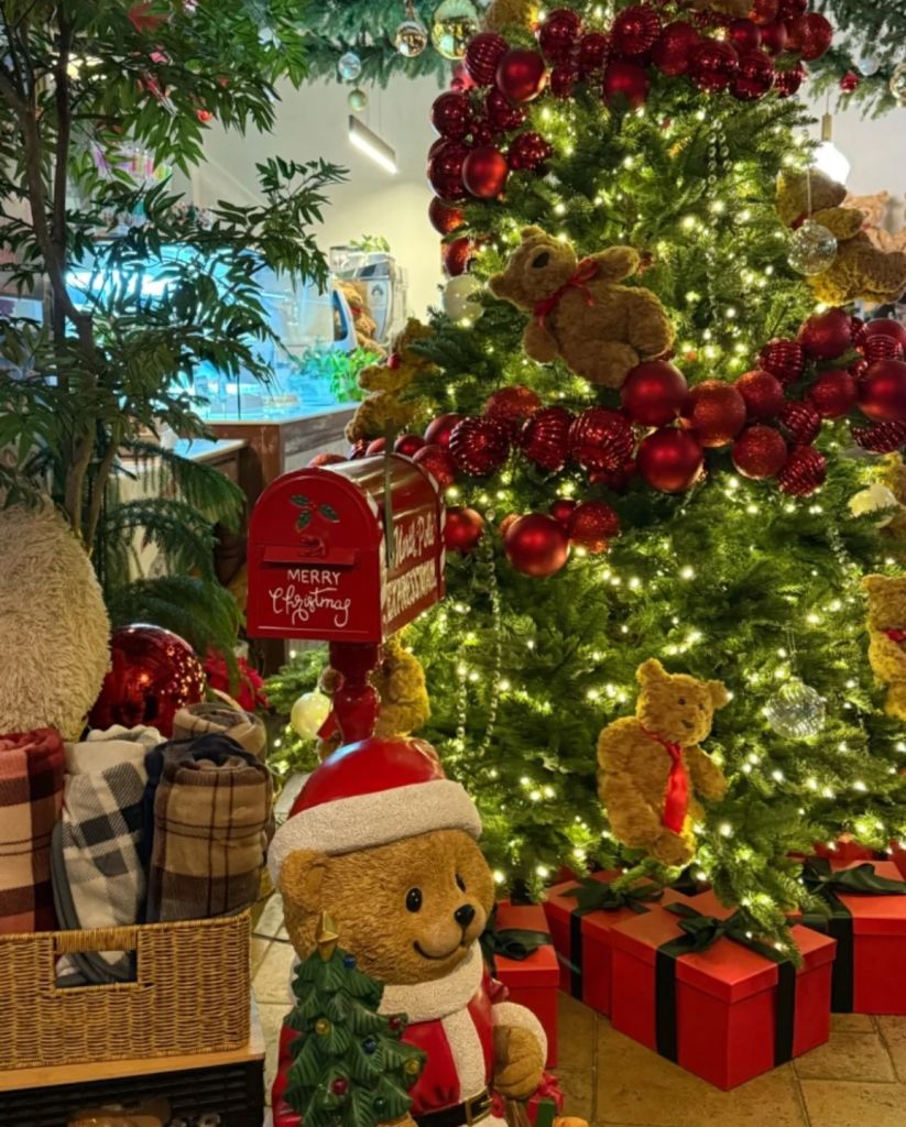 겨울이면 크리스마스트리와 조명으로 꾸민 유럽 감성 케이크 숍