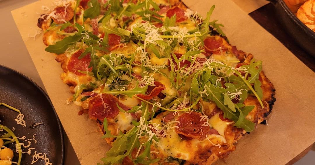 대파, 견과류, 페퍼로니 등을 토핑한 피자