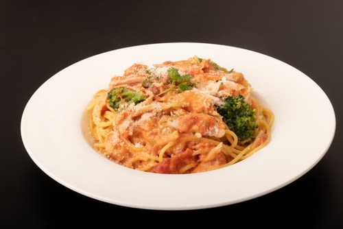 삶은 스파게티 면에 새우, 대게, 크림 소스를 곁들여 볶아낸 파스타
