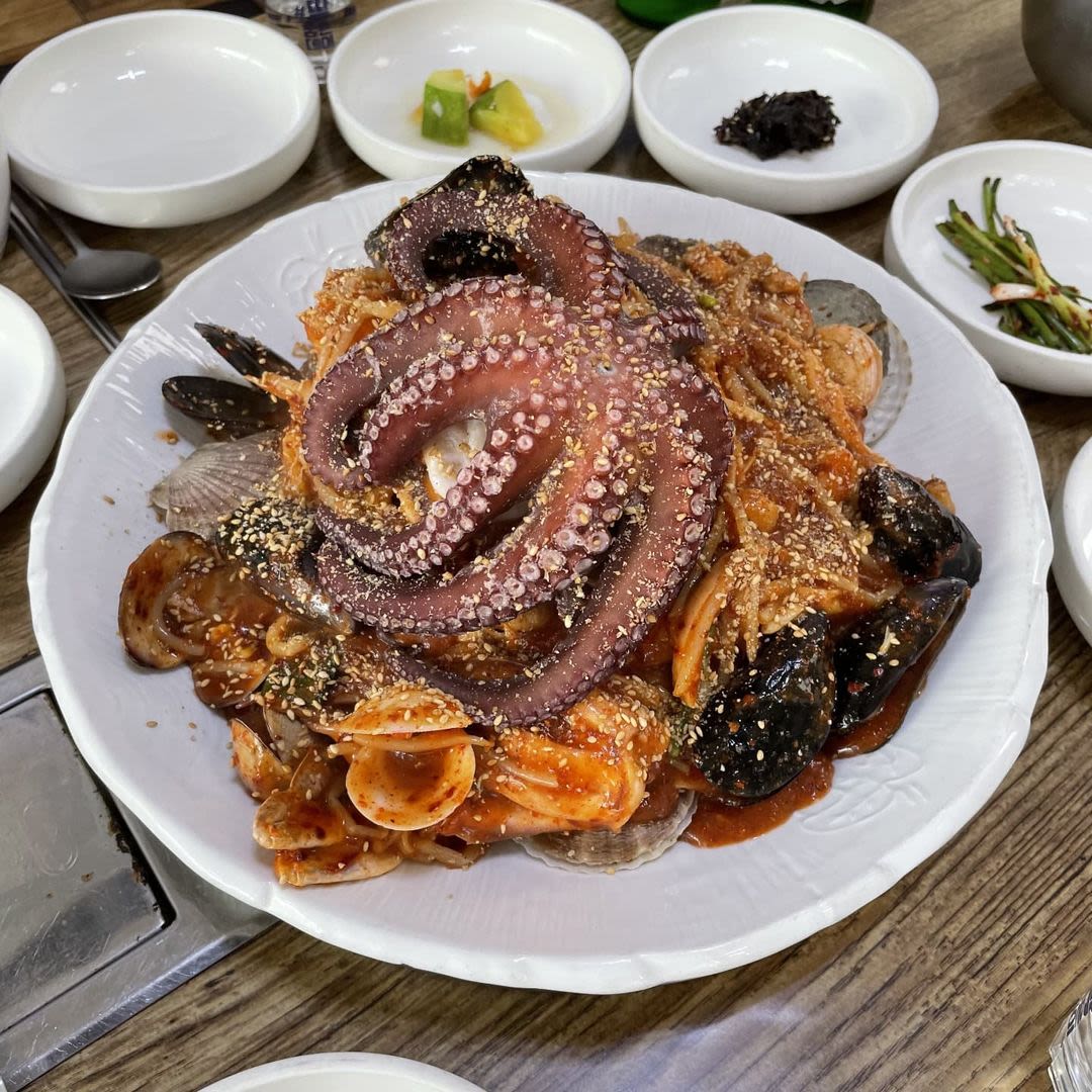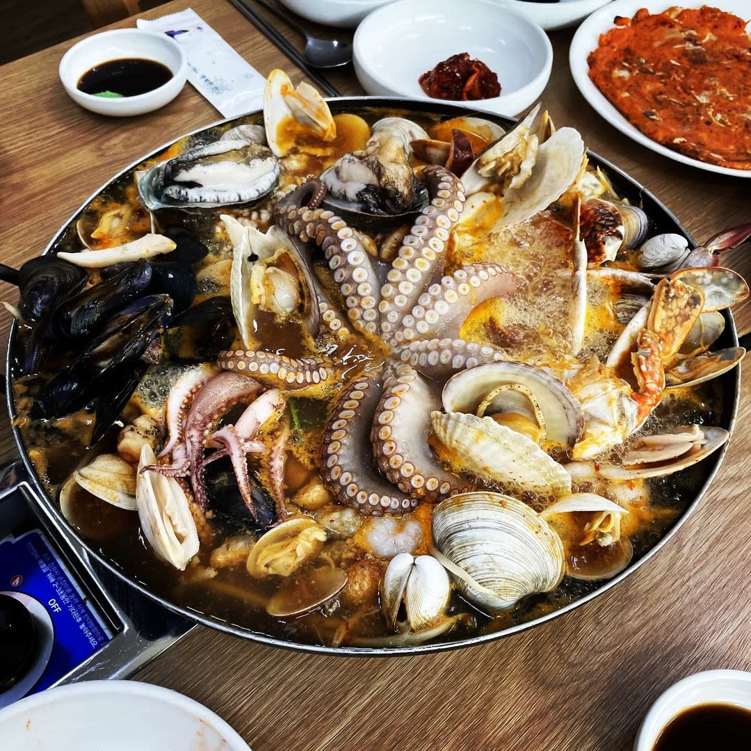 각종 해산물과 큼지막한 문어가 통째로 들어간 해물탕을 선보이는 맛집