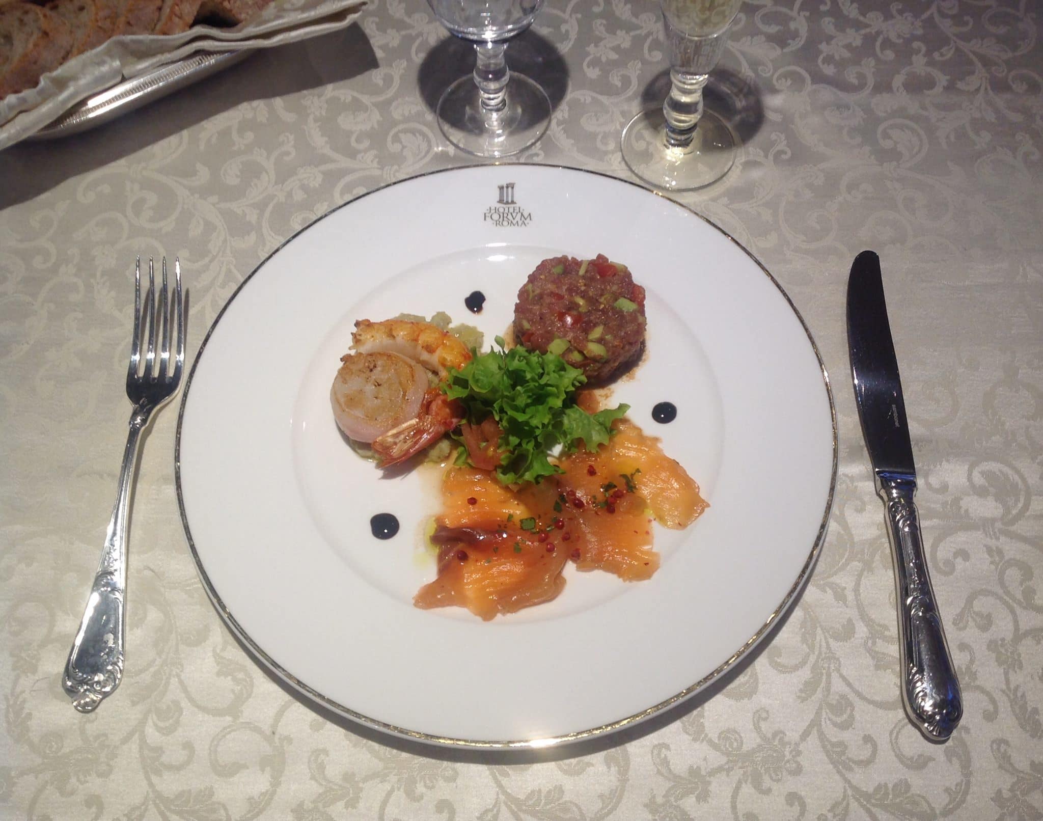 각종 향신료로 양념한 연어와 참치 타르타르, 구운 가리비와 관자로 구성된 메뉴