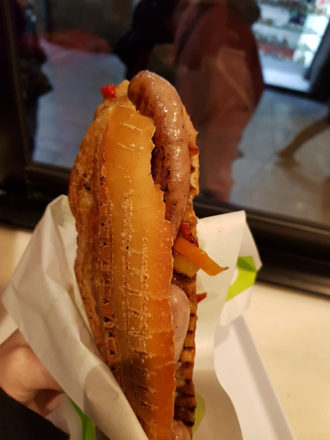 소시지와 채소가 들어간 샌드위치를 비롯해 다양한 메뉴를 선보이는 가게