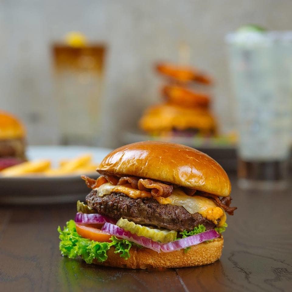 소고기 패티, 베이컨, 콜비 치즈, 각종 채소 등을 넣은 버거
