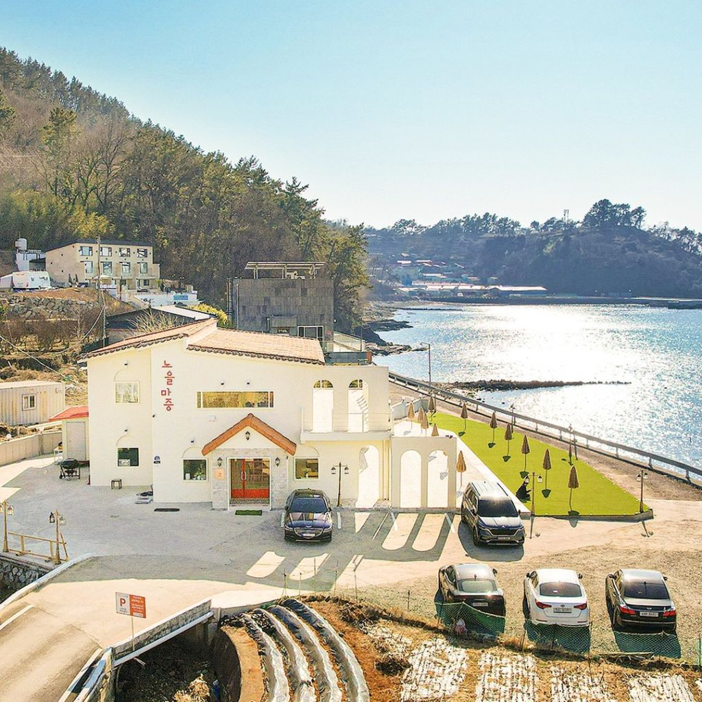 휴양지 분위기를 뽐내는 야외 테라스가 매력적인 오션 뷰 레스토랑